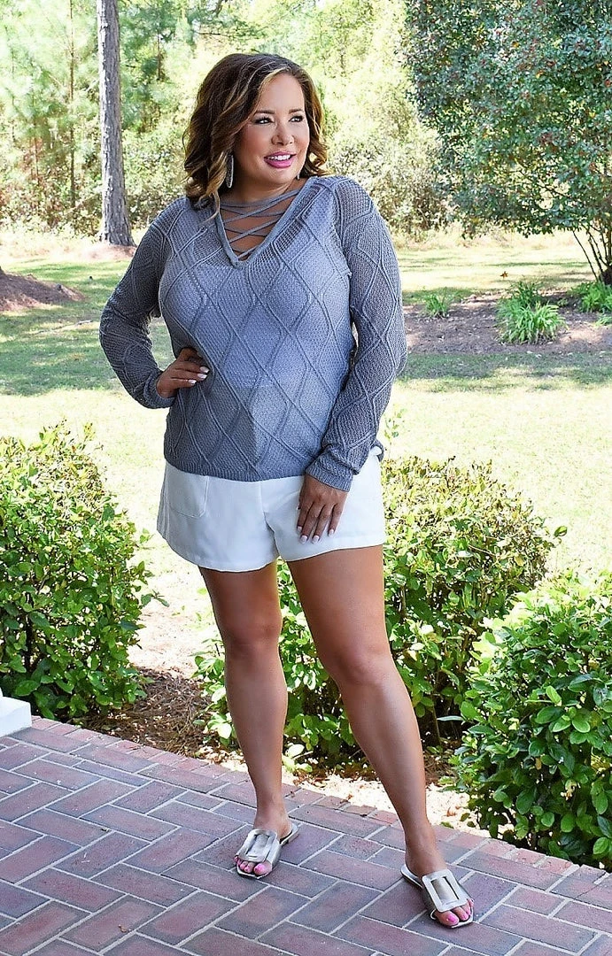 This everyday little gray top is sure to be your new favorite! We love the gray coloring and breathable design! This is sheer so you will need a tank underneath for coverage. The unique knit design and criss-cross back detail are our favorite details! Make this top yours and enjoy turning heads!