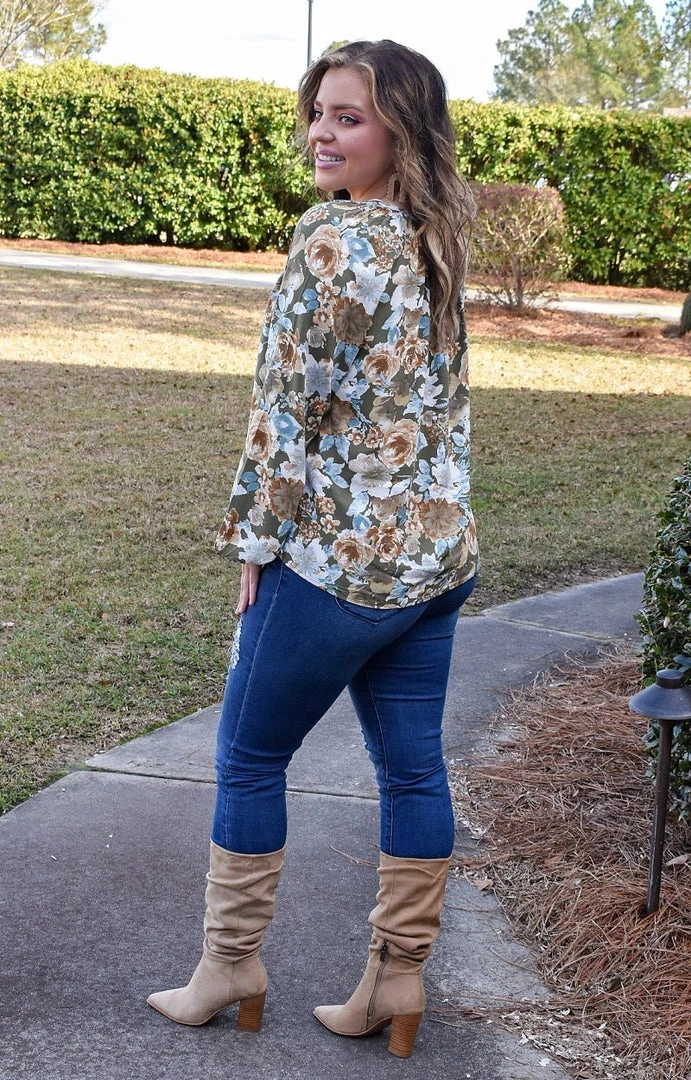 This little floral top is absolutely beautiful with such an eye catching color combination to make it stand out. Although this one has no stretch in the material, it does have a more open cut design to flatter and glide over your shape. Grab yours up and enjoy rocking it with your favorite jeans and statement accesssories.Â