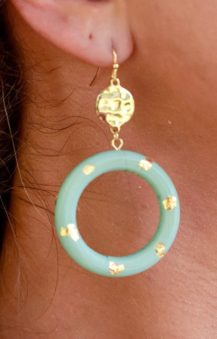 The cutest earrings ever are here and begging to be added to your closet! We love the sage color with the pressed metal base. The metallic polka details throughout add yet another touch we adore! Don’t miss out on making these trendy earrings yours!Â