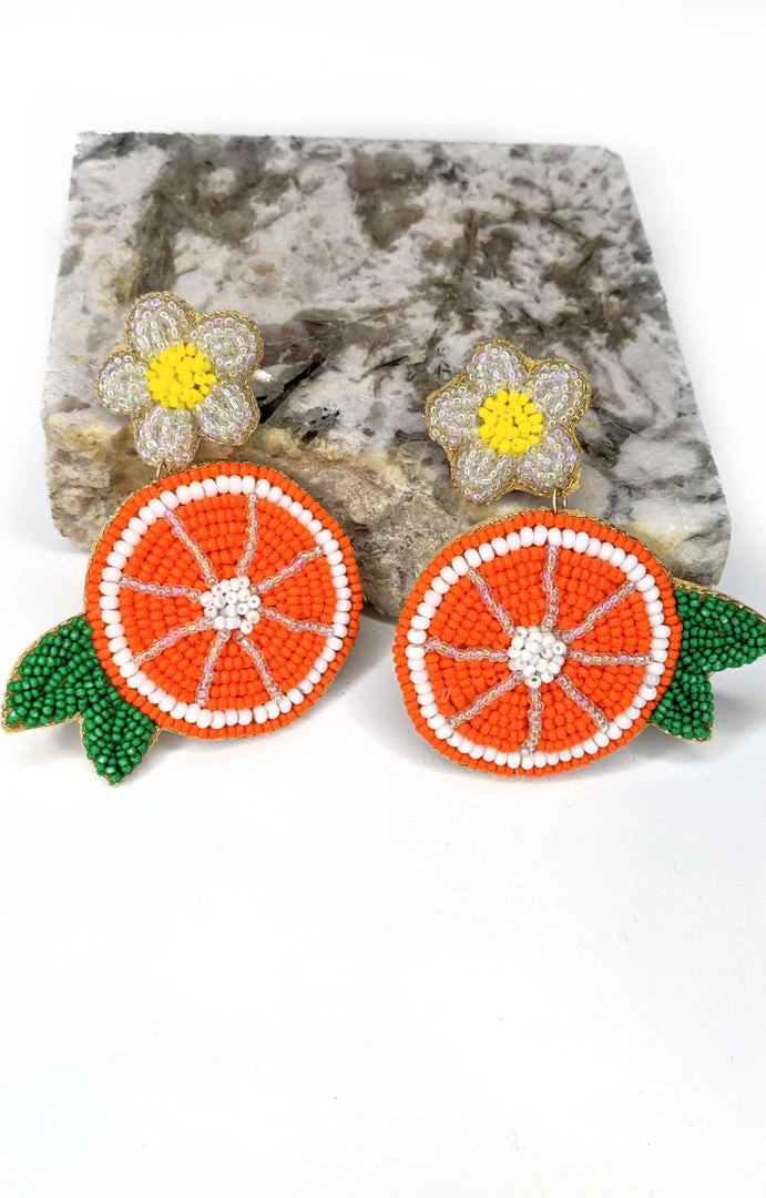The cutest summer inspired earrings are here and begging to be added to your closet! We love the unique beaded design truly setting these apart from the rest! The floral base with the orange trim offers such an eye catching look! Don’t miss out making these one of a kind earrings yours!Â