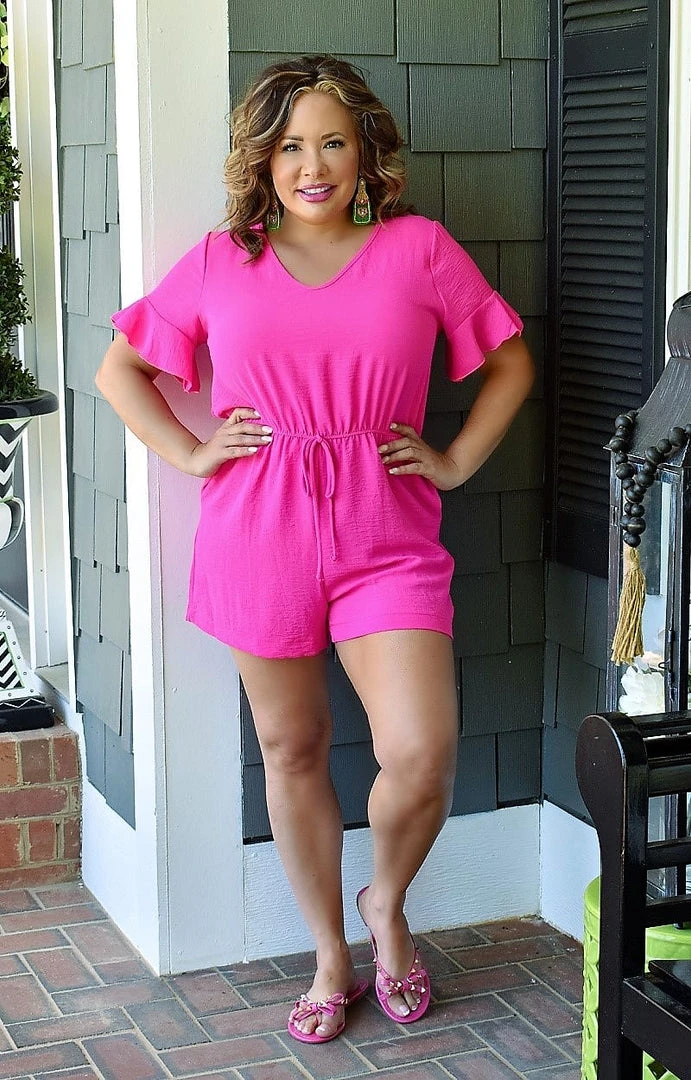 This romper is just what a sassy girl needs! Whether it’s girl’s night out, or just a cute go to weekend look, this one is sure to bring on the wow factor! This romper features an elastic style waistband with a cut that runs to true size. Grab yours up today and get that hourglass look!