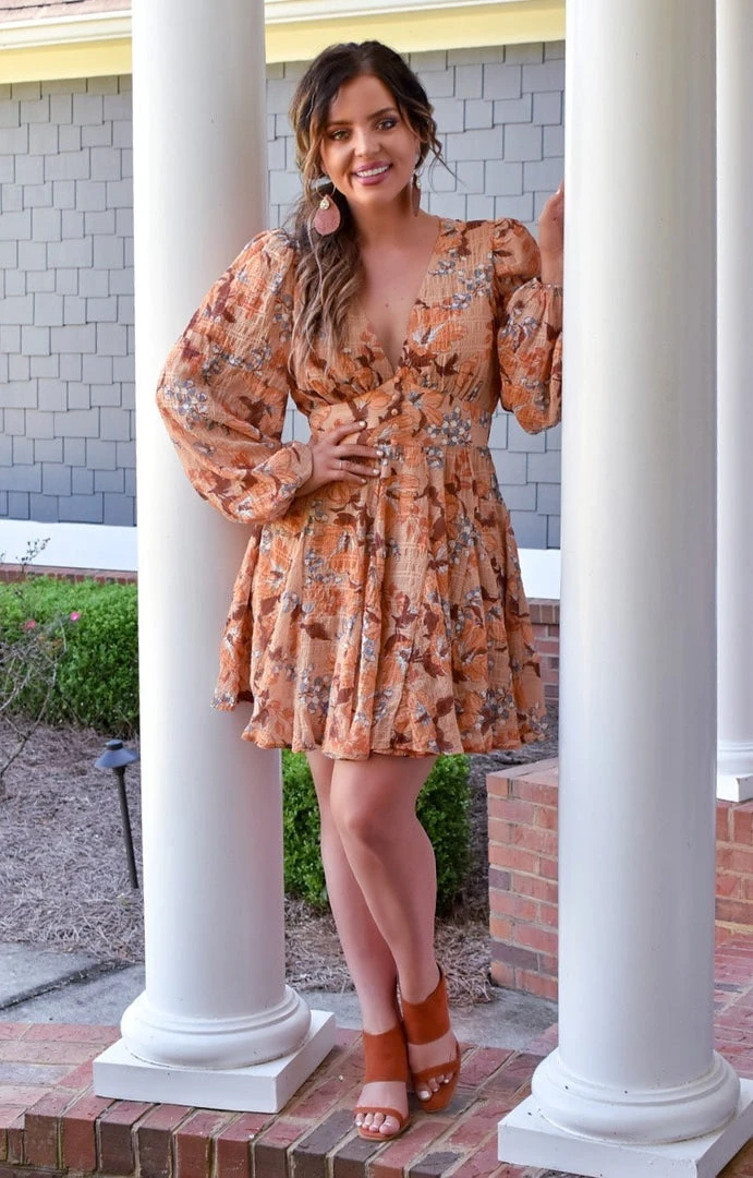This little dress is at the top of our must have list this Fall! This beauty features a Fall design with the cutest floral accents to truly make it stand out. This one has more open cut sleeve detailing to give it that more dramatic pop. The button accents near the bust line give the cutest extra touch to make this one stand out even more. You are going to look fabulous in this!