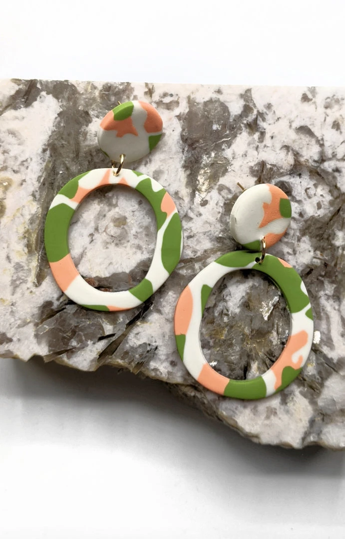 These adorable marbled earrings are sure to add a statement touch to whatever they are paired with! We love the peach and green colors throughout these giving them the look of Spring! You will love having these must have’s in your closet!Â