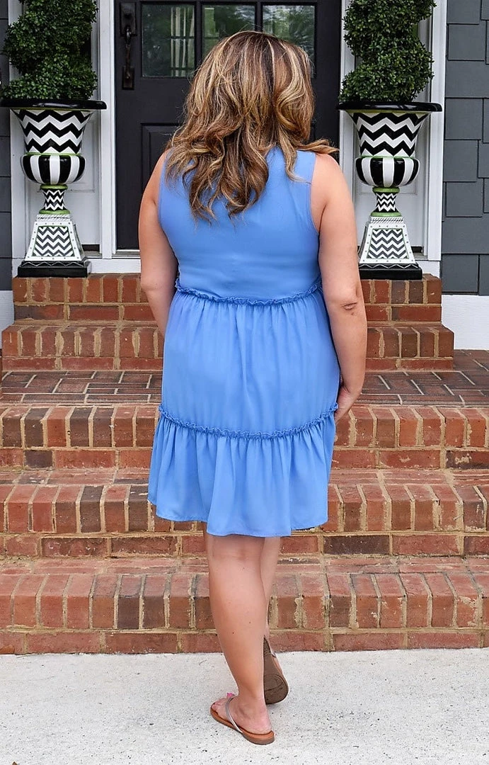 We are smitten by this denim blue color and the fabulous ruffle tiered accents in this must have dress. This one features a non stretch material that is more fitted in the bust area. If larger in the bust, we recommend sizing up one size for the best fit. Rock this beauty by itself, or layer this dress with your favorite go to pieces! Either way, you are sure to turn heads all day!