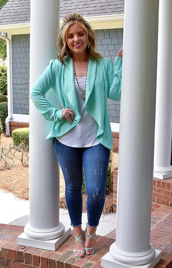 This blazer is absolutely fabulous! Available in multiple colors, this mint option may be our fav! This one is bold and pairs perfectly with so many looks. We love the stretchy and comfy design of this one as well. You are going to love rocking this multiple ways this season!