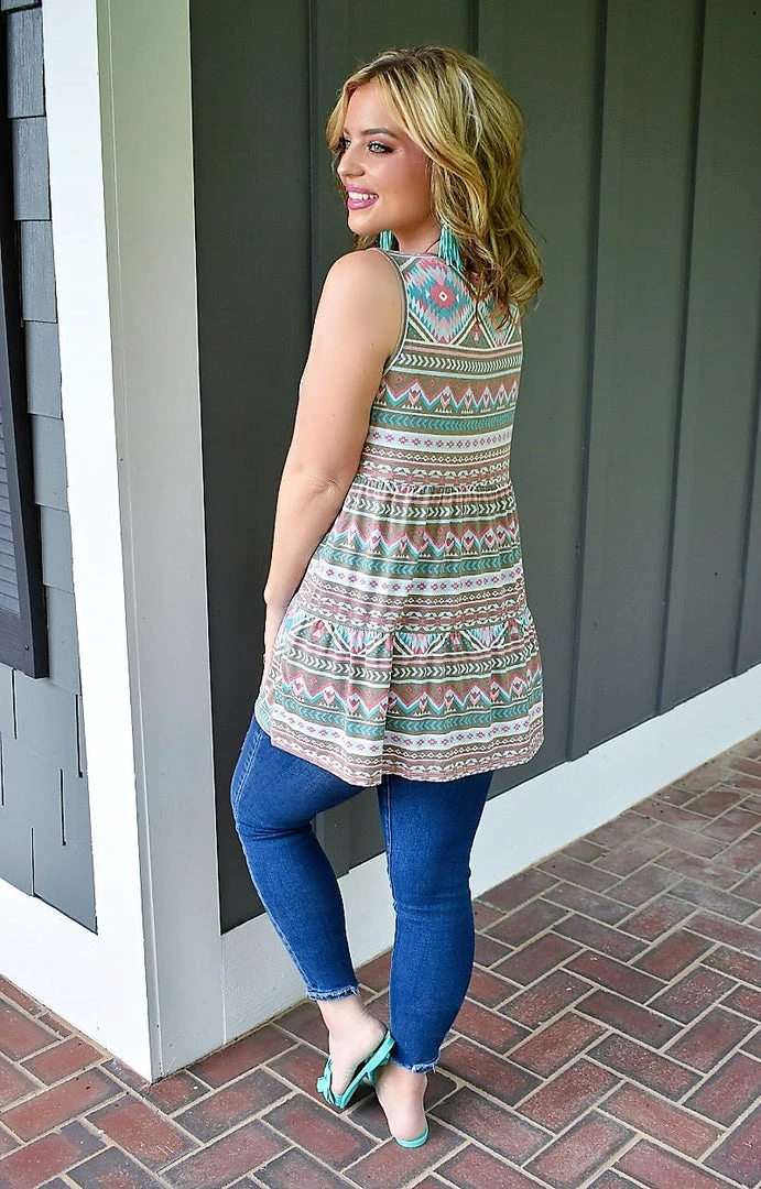 Have all eyes on you the moment you step out rocking this trendy Aztec top! The material is forgiving and light weight perfect for all day wear! The sleeveless design and v-neckline is perfect for the remaining hot summer days ahead! You will love the endless styling options this top has to offer! Don’t miss out on making this stunner yours!