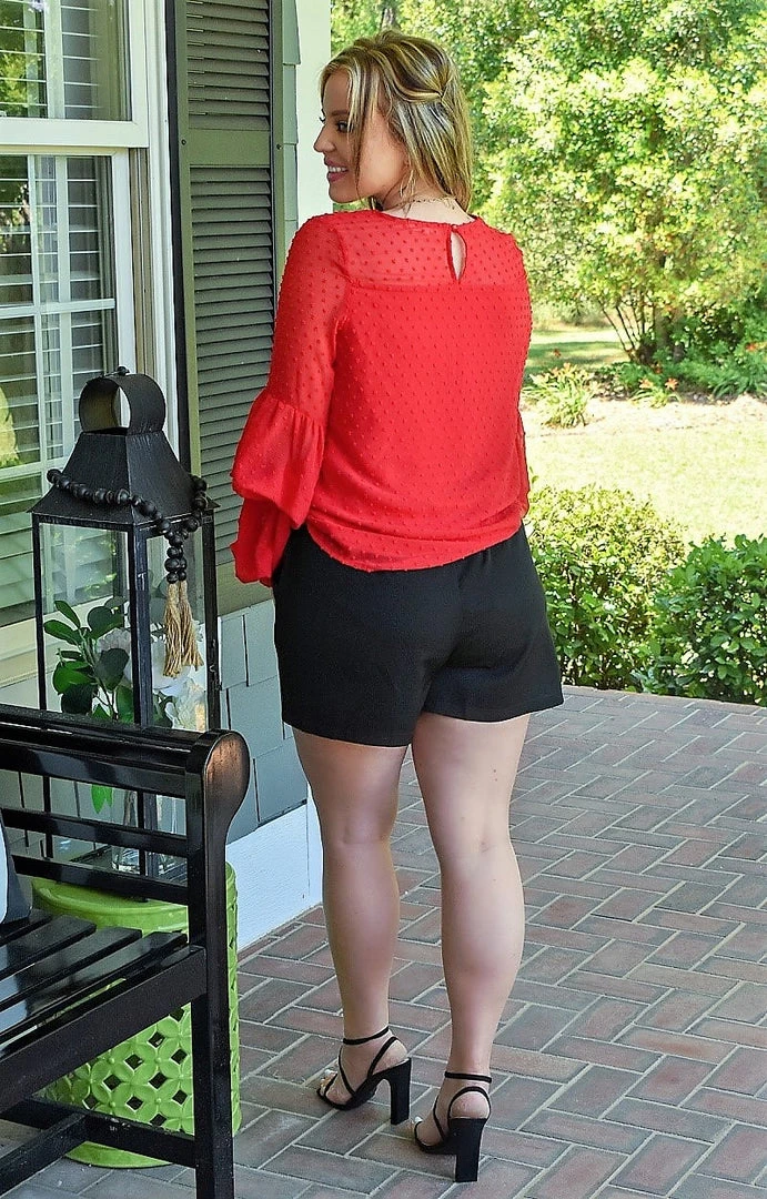 We love a top that can easily be dressed up or made more casual and this one is definitely sure to bring endless possibilities! This top features a non stretch material with minky dot detailing and the cutest dramatic sleeves. There is no stretch in the bust, so if larger in the bust, we recommend sizing up to be safe. You are going to look amazing in this!