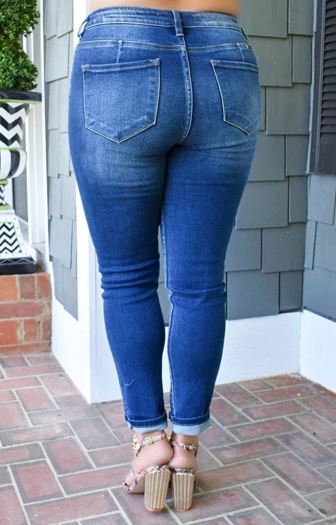 Show off your sleek yet trendy style with this pair of high-rise super skinny jeans. Featuring fading, whiskering, 5-pocket design, and single button closure with zip fly.
