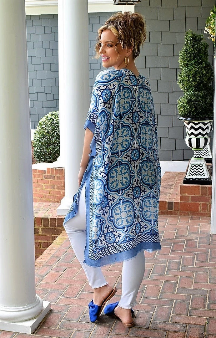 Layer in style all season long with this stunning, lightweight must have! This print kimono features beautiful shades of blue and ivory that layer beautifully with so many solid looks. This kimono also doubles as the perfect swimsuit cover up as well! Grab yours and enjoy endless layering looks!