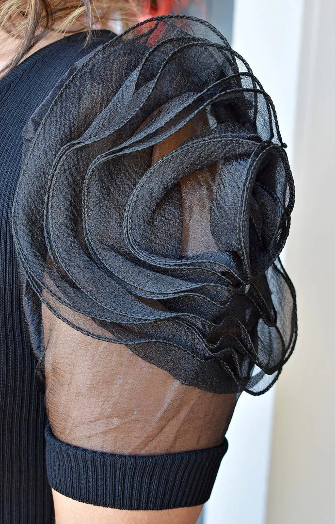 The perfect little black dress is here and calling your name this season! It features a more structured style stretch to show off your shape and flatter with a ribbed design in the material. Our favorite finishing touch is the statement making sleeves that feature a puff flower like design to truly bring on the sass. You are going to love this one!