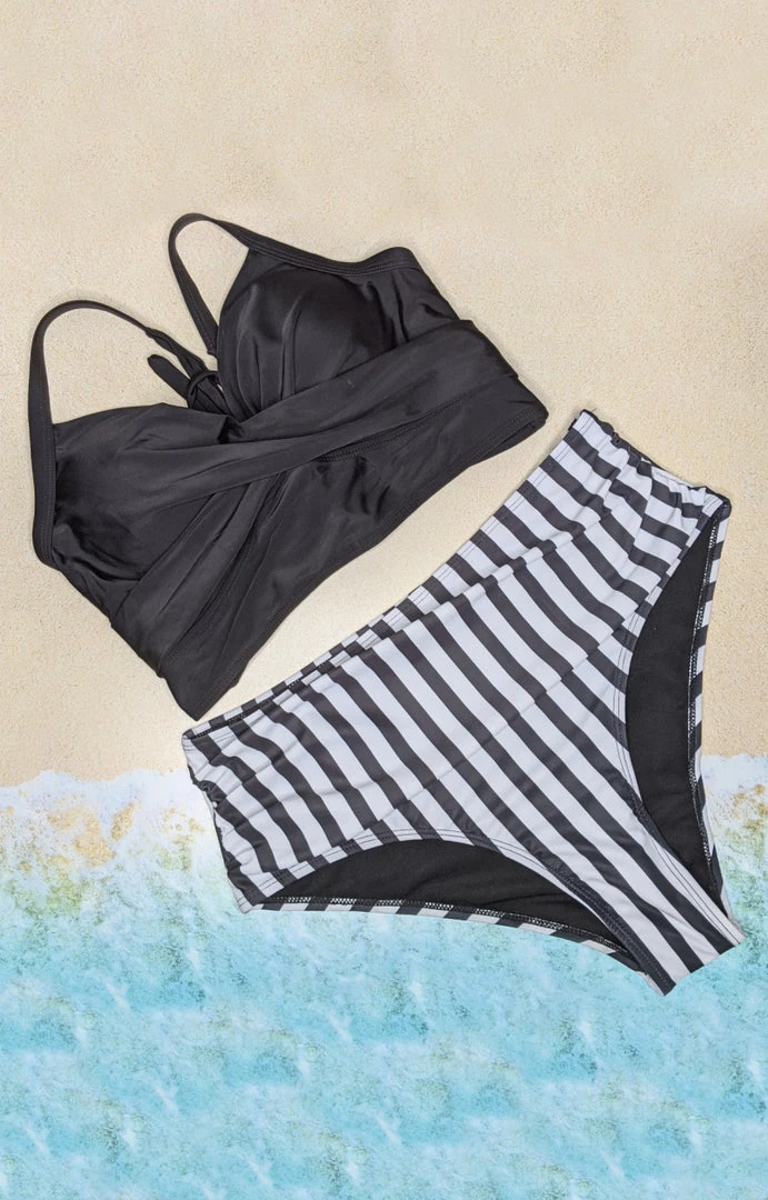 Get ready to sizzle by the pool all season long in this head turner! This flattering swimsuit features a high rise bottom to give ultimate coverage to the mid section. The top features an intricate strap design in the back to add a fun pop. If you’re looking for a flattering and eye catching must have for Summer, this has your name all over it!