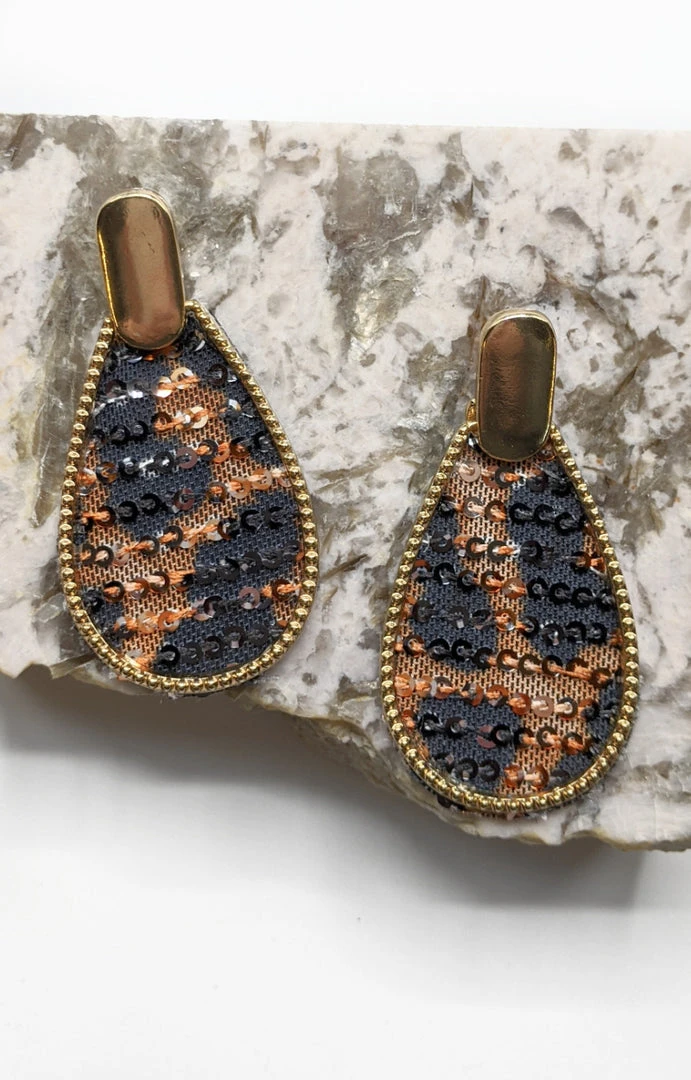 These earrings are so adorable! We love the leopard sequin design sure to set these apart from the rest! The gold base adds another touch we love! Make these yours before they are gone!