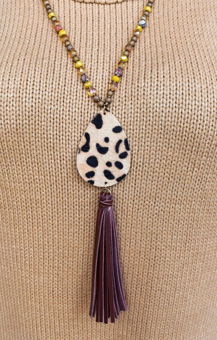 Statement necklaces are always a must and this stunner is no exception! We love the beaded design with the teardrop leopard base truly setting this apart from the rest! You will love mixing and matching this with all your go-to looks this season!