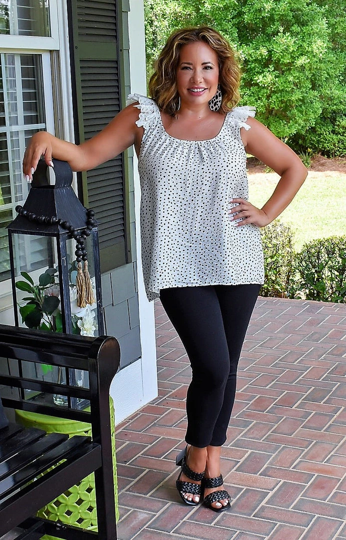 This little top pairs perfectly with our favorite black pants! This one has no stretch in the overall material, but does have a more open cut fit. The adorable detailing along the sleeves adds such a cute touch to make it pop even more. Throw this on with our new must have earrings and a get ready to look absolutely PPB fabulous no matter where you go!