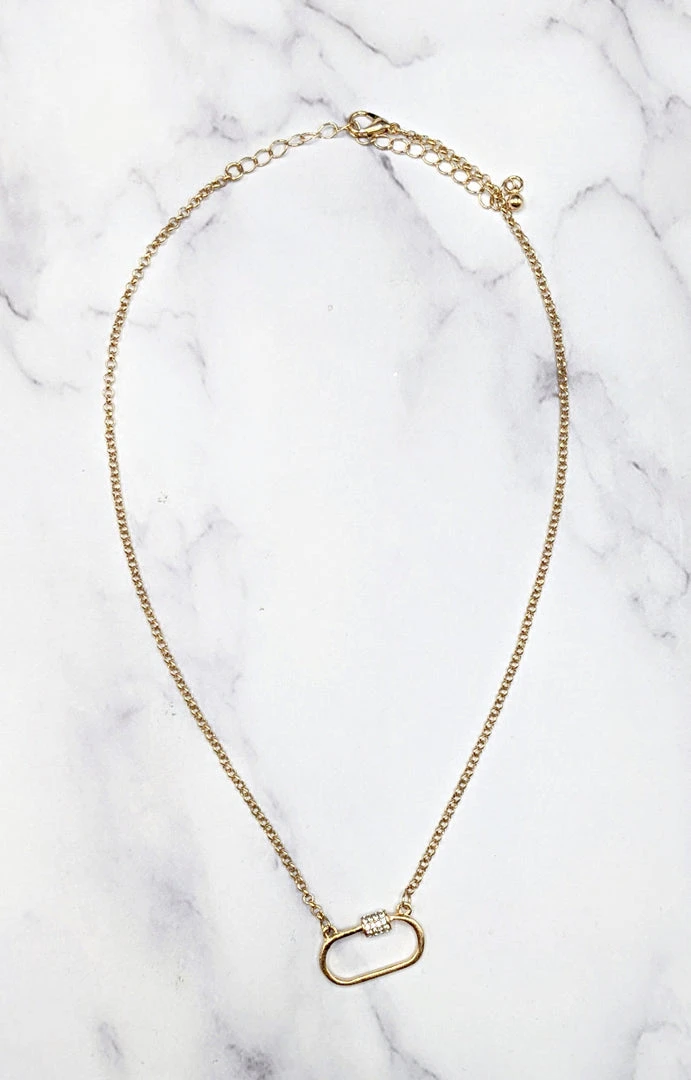 This simple yet eye catching necklace is begging to be added to your close this season! We love the gold color making the pairing options endless! You will love rocking this necklace every chance you get!Â