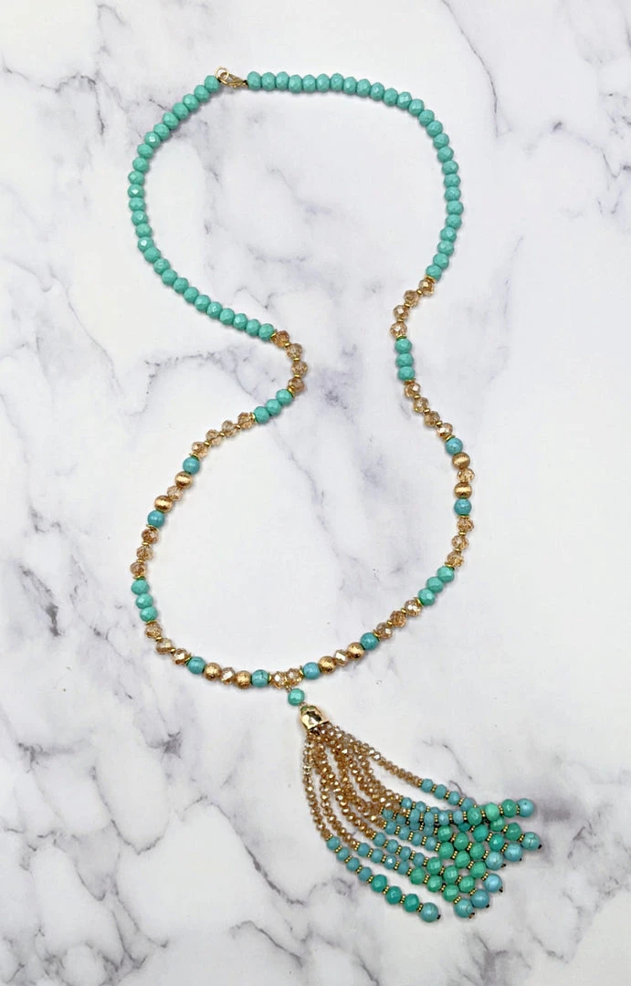Statement necklaces are always a must and we are completely obsessed with stunner! From the mint and rose gold beading to the tasseled beaded trim, this necklace is at the top of our must have list! Hurry and make this necklace yours, these wont last long!
